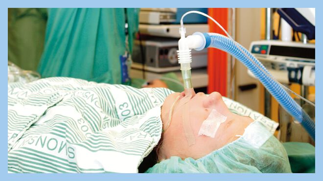 Before the surgery can start Ronja must be put in to a deep sleep. Gunilla is an anaesthetic nurse and she and the anaesthetist Ulf are responsible for Ronja sleeping deeply during the entire operation. Gunilla sticks three so-called EKG-electrodes on Ronja’s chest and connects them to a computer. The electrodes shall monitor that Ronja’s heart functions as it should. Ronja also gets a clamp on the finger that measures how much oxygen there is in the blood. “ Quiet everyone, it is time to put Ronja to sleep, says Gunilla. Now you’ll be given a medicine so that you will go to sleep very quickly, Ronja. Sleep well!” After just fifteen seconds Ronja is asleep and will not feel anything at all of the operation.