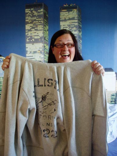 My arm hurt like hell all night. Mom and I are going to the emergency clinic now. My favorite hoody is completely trashed. I'm actually sadder about that than about my arm. My arm will heal, but I have no idea when my sister will be going to the US next time and can buy me a new hoody. Mom tried to fix it but it looks even more haggard. My status right now: No sweet hoody. No sweet arm. No sweet girl. No sweet backflip. No sweet life.